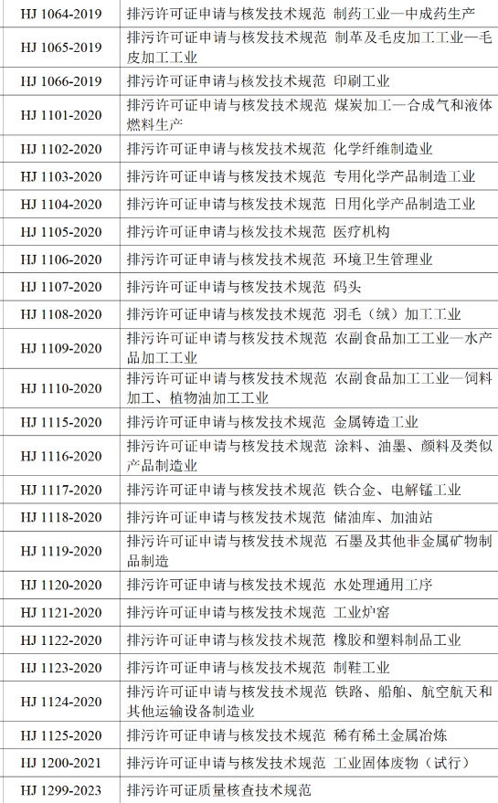 已發(fā)布的75項排污許可證申請與核發(fā)技術(shù)規(guī)范清單